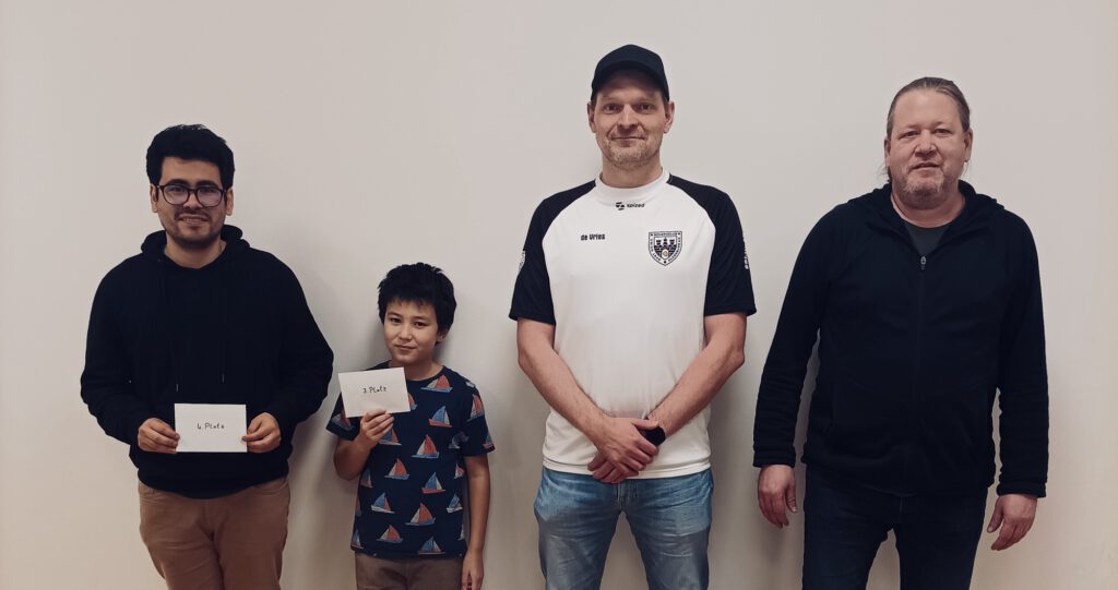 Für Marc Schütte war das Turnier ein Start-Ziel-Sieg. Er hatte am Ende des Turniers als Einziger 7 Punkte aus 9 Partien und wurde somit verdient Oldenburger Stadtmeister 2025. Immer vorne mit dabei während des Turniers war auch Carsten de Vries, der mit 6,5/9 Punkten und der besseren Feinwertung den 2. Platz belegte – beide SK Union Oldenburg.