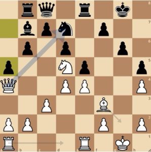 Nach 17. Dxd7 hätte der Gegner bei korrektem Spiel eine Stellung von +0,5 erreicht. Allerdings nahm er den Springer (17. … Lxd5) und verschlechterte seine Stellung weiter.